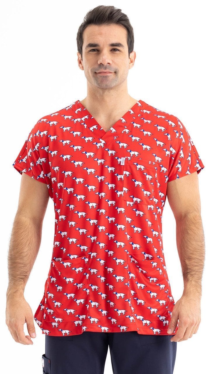 Kırmızı Köpekli Desen Erkek Tek Üst No:12